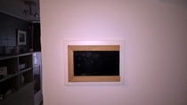 Einfassung eines LED Bildschirmes, passend in die vorhandene Raumausstattung. Grundplatte Weiß Lack, Rahmen Eiche geölt. Bildschirm seitlich herausnehmbar.